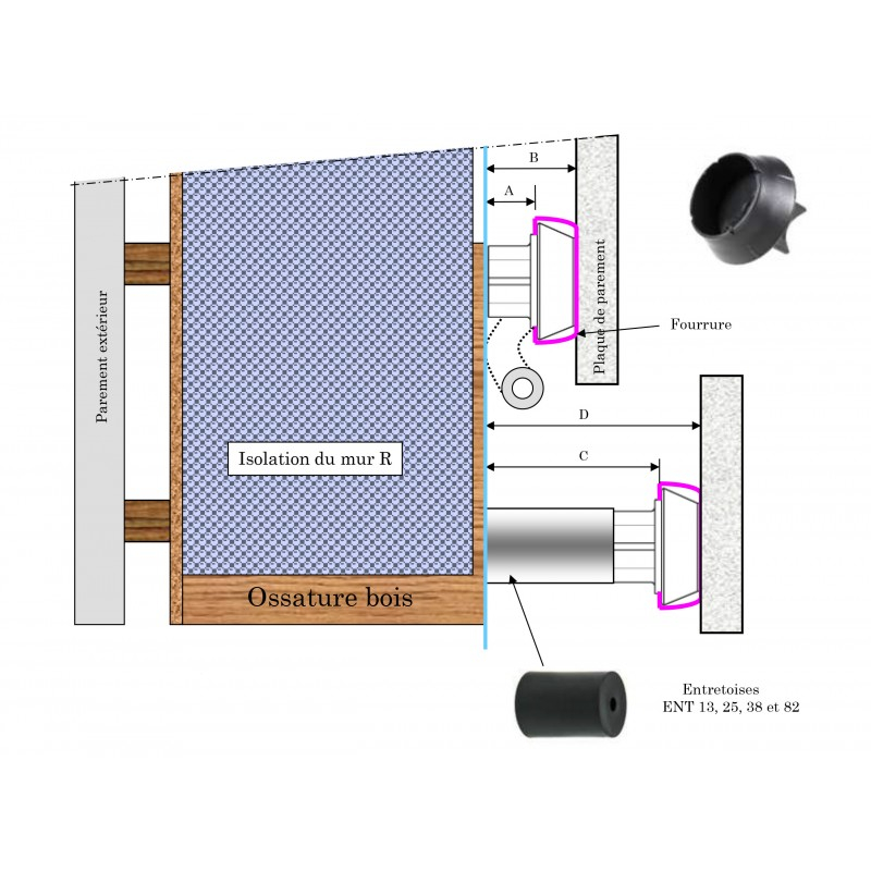 Appui 15-45: pose direct sur ossature bois ou isolation acoustique, sur murs irréguliers et sur ossature/montant bois