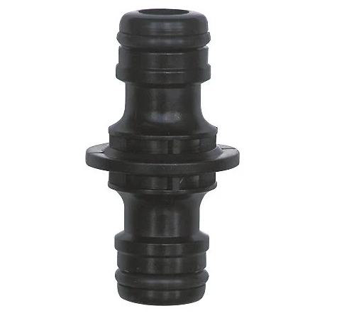 Accoupleur plastique pour tuyaux avec raccords automatiques. Permet d'allonger facilement la longueur d'un tuyau d'arrosage.