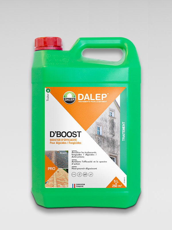 Augmente la vitesse d’action du traitement | Élimine les graisses et les salissures | À diluer avec un fongicide | Sans rinçage | Toitures, murs, terrasses | Produit lavant | Augmente le spectre d’action.