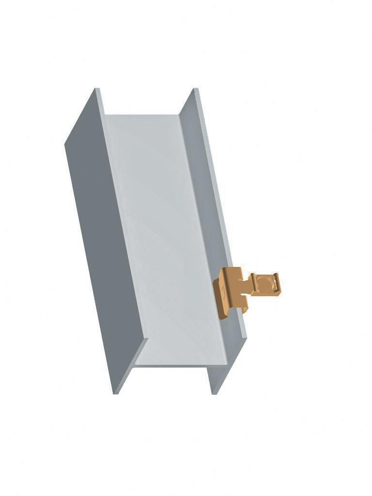 Attache bord de tôle destinée à la fixation de tubes et de câble électriques sur une structure en acier (poutrelle IPE, profilé) de bâtiment commercial ou industriel
