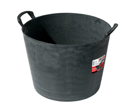 Auge caoutchouc synthétique (EPDM) de Taliaplast : légèreté et résistance aux chocs et à tous types d‘agression. Souple, résistante, se porte comme un cabas. Graduation intérieure. Évacuation de gravats, etc... Ø 450 mm, hauteur 330 mm. Poids 1,5 kg. Emboitable.