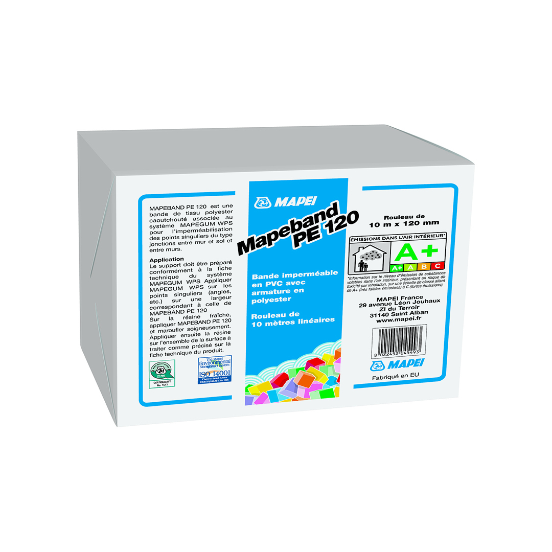 Mapeband PE120 | Bande de tissu polyester caoutchouté, associée au système Mapegum WPS et Mapelastic AquaDefense. En neuf et en rénovation, avec tous types de supports élastique et déformable.