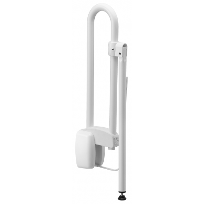 Barre relevable avec béquille de marque Pellet pour aide à la personne.Tube aluminium blanc Ø 30 mm. Platines en résine de synthèse. Avec béquille de soutien intégrée, réglable en hauteur par vérin. Fixations invisibles. Garantie anticorrosion. Sécurisant : blocage en position verticale. Charge admissible 120 kg