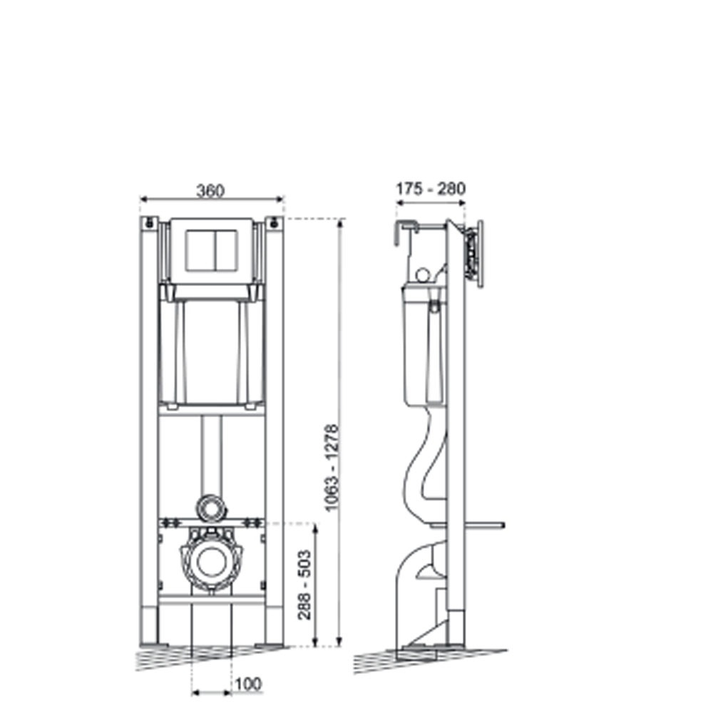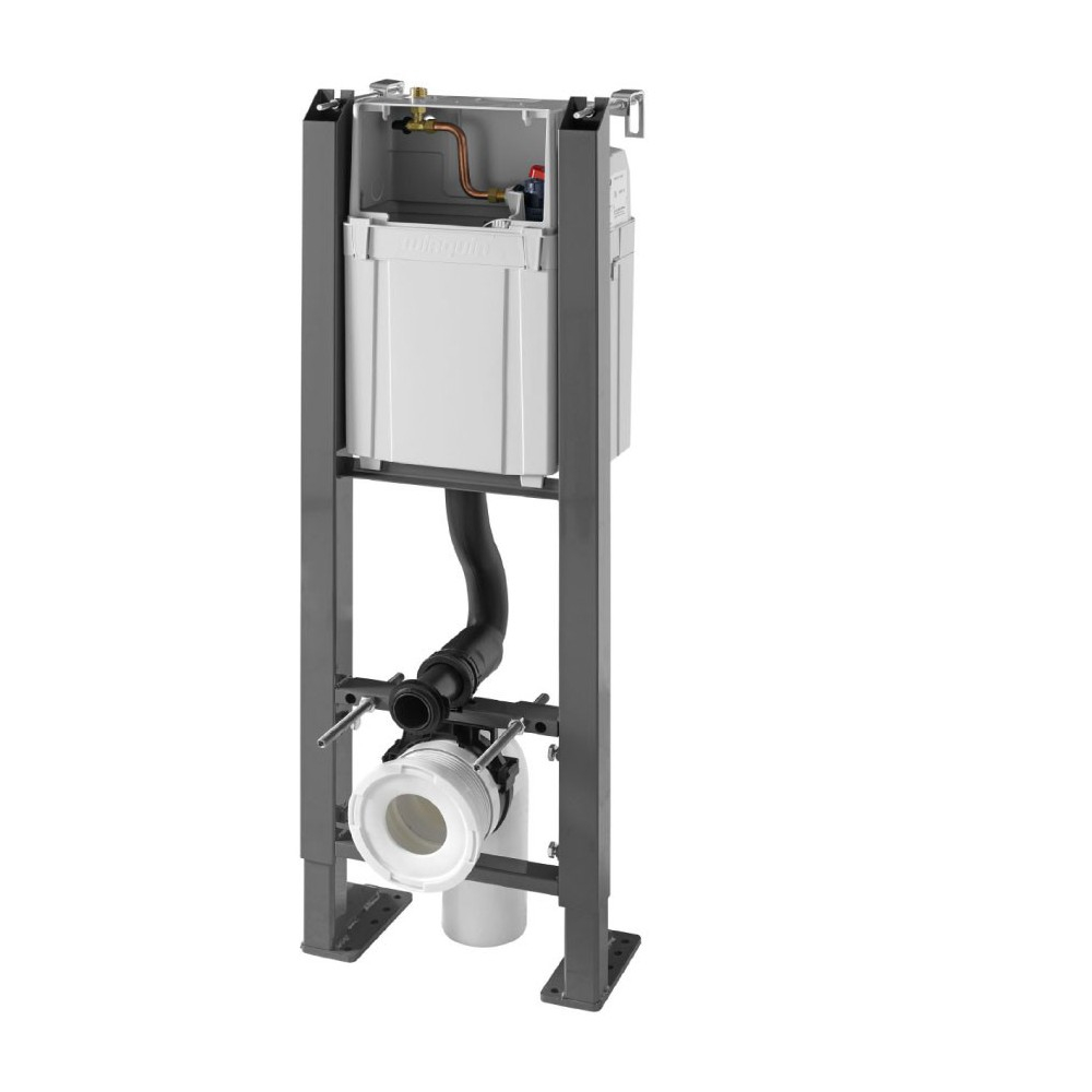 Bâti-support WC autoportant | Structure en acier traité anti-corrosion | Débit sous 3 bars 9.5 L/min | Volume réservoir : Capacité maximal 7L | Connexion par embout G1/2 | Supporte une charge de 400 kg | Ajustement automatique de la plaque de commande à l’épaisseur du support | Montage facilité, l’armature est biseauté pour une fixation murale et une découpe sans décaler le bâti Installation simplifiée grâce aux tiges filetées à empreinte héxagonale | Livré avec kit de liaison et sans plaque de commande