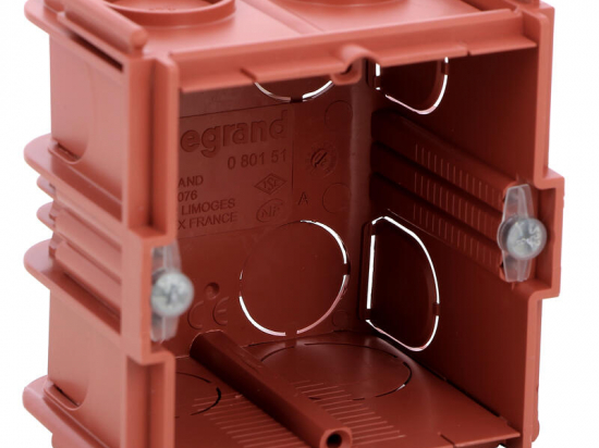 Legrand. Boîte Batibox carrée pour maçonnerie 1 poste associable profondeur 50mm Livrée avec vis équipées de cache de protection - Entrées défonçables Ø16mm, Ø20mm, Ø25mm Découpage possible du fond et des entrées Multiplicité des entrées (latérales et en fond de boîte) pour le passage de gaines Conforme à la norme NF EN 60670-1
