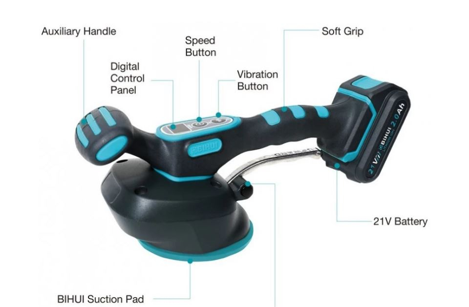 Il associe une ventouse (pour soulever/manipuler les carreaux) à une fonction vibrante qui chasse l’air et homogénéise la colle sous le carreau, pour une pose propre et durable.