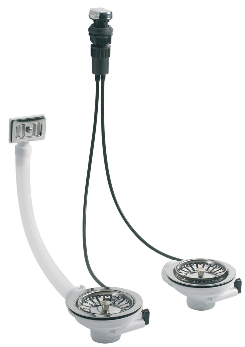 Bonde d'évier 2 cuves diamètre 90 mm. Marque Valentin. Ces bondes pour évier 2 cuves en diamètre 90 mm avec trop plein ont une commande automatique à câble. Les cuvettes en inox mesurent 113 mm de diamètre. Les paniers en inox également mesurent 84 mm de diamètre. Le serrage de chaque bonde est possible de à 18 mm. Les câbles ont une longueur de 600 mm. Le débit est de 35l/mn. L'encombrement sous évier est de 57 mm. L'ensemble inclus une grille de trop plein rectangulaire et une grille de trop plein ronde pour un choix total. Les finitions sont en inox.