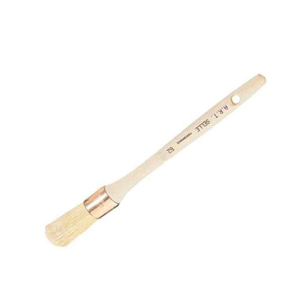 Brosse pouce Performance de la marque Ocai - Mélanges soies blanches et synthétiques - Tirure moyenne - Virole acier cuivré - Simple sertissage - Manche en bois naturel