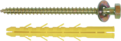 Ing Fixations. Cheville Ø12 x 130 fendue sur toute sa longueur. Tire-fond Ø10 x 140 entièrement fileté. Idéale pour les matériaux creux. Tire-fond finition zinguée jaune. Dans la brique creuse, vissage manuel pour une fixation optimale. Fabrication Française. Expansion totale. Dans les matériaux creux, expansions sur plusieurs alvéoles du support. Cheville 100% nylon polyamide 6. Facile et rapide : Pose au travers de la pièce à fixer.