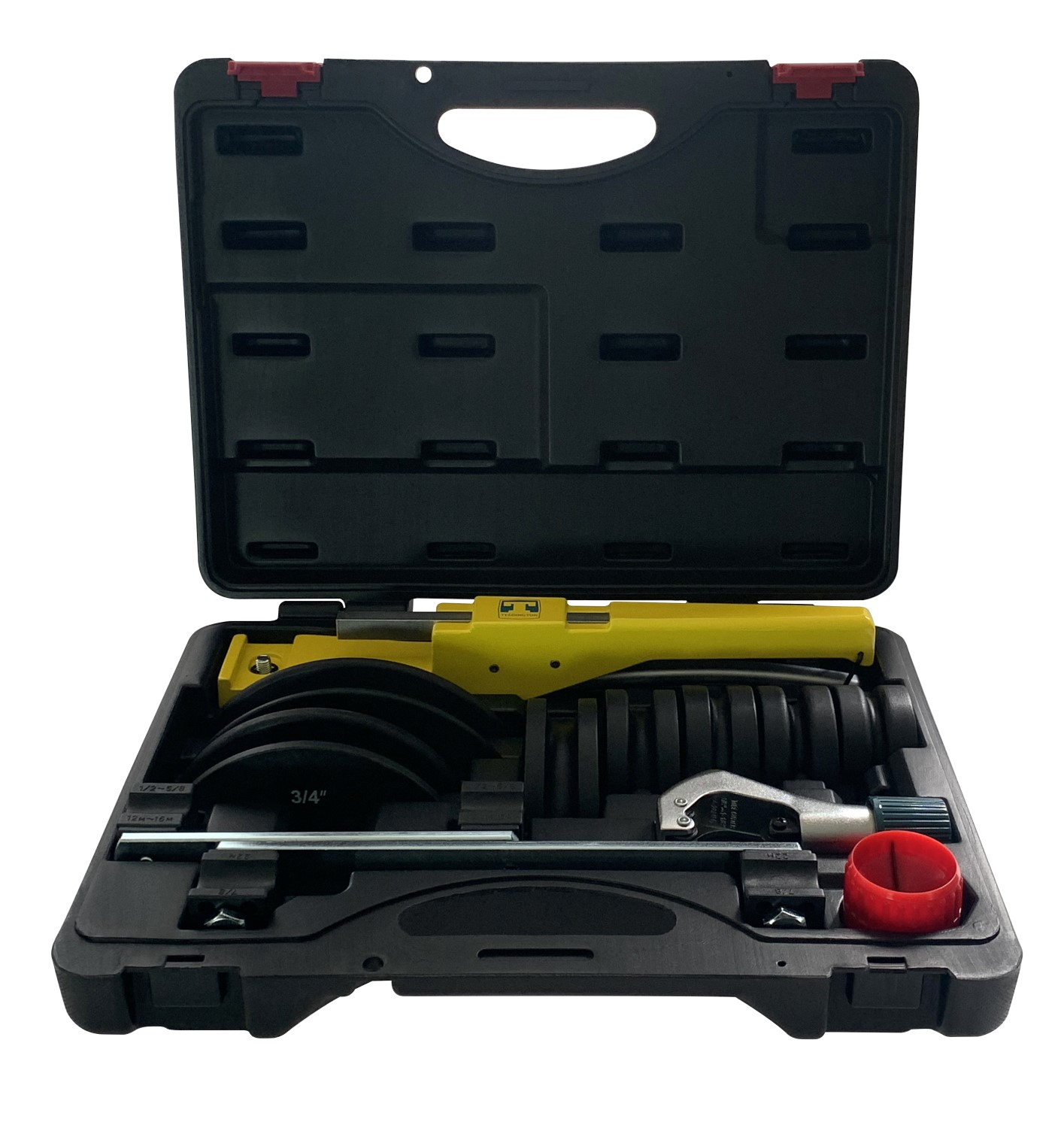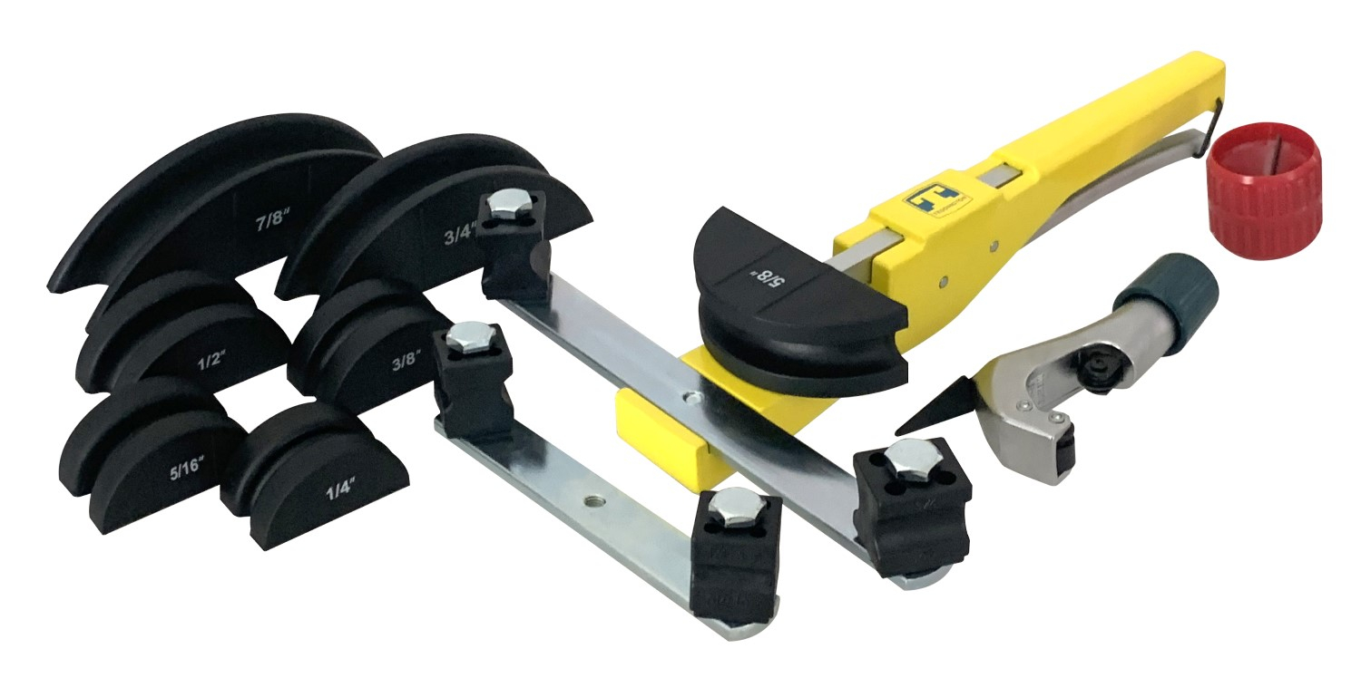 Coffret cintreuse à arbalète Teddington, complet avec : coupe-tubes, ébavureur intérieur/extérieur,  formes 1/4" - 5/16" - 3/8" - 1/2" - 5/8" - 3/4" - 7/8" OD.