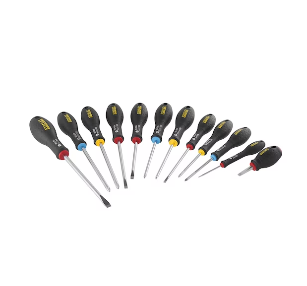 Contient 12 pièces : Electricien 2.5x50, 4x100, 5.5x150. Mécanicien 5.5x100, 6.5x30, 8x150. Philips PH0x75, PH1x100, PH2x125. Pozi PZ0x75, PZ1x100, PZ2x125.