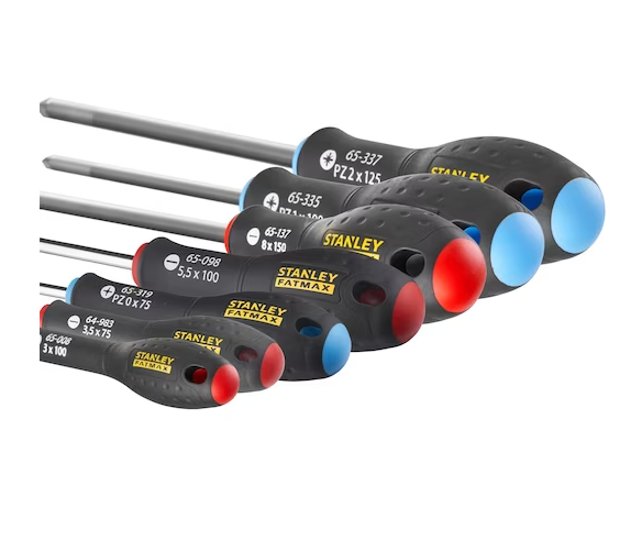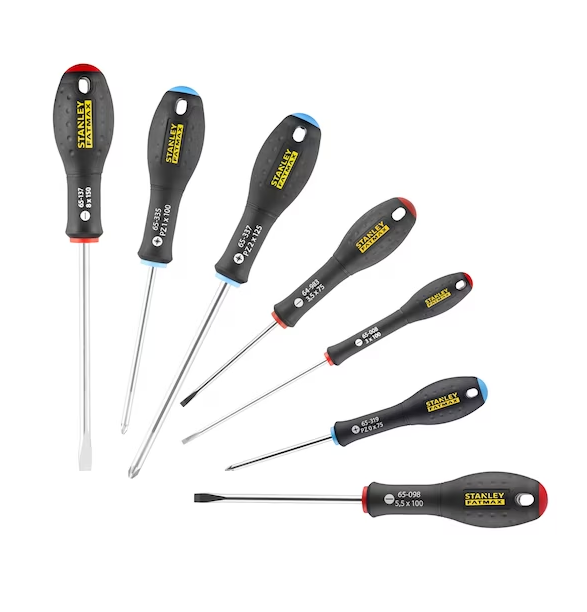 Coffret de 7 tournevis | Fatmax | Electricien - Mécanicien - Pozi | STANLEY | Electricien 3x100, 3.5x75. Mécanicien 8x150, 5.5x100. Pozidriv PZ0x75, PZ1x100, PZ2x125mm.