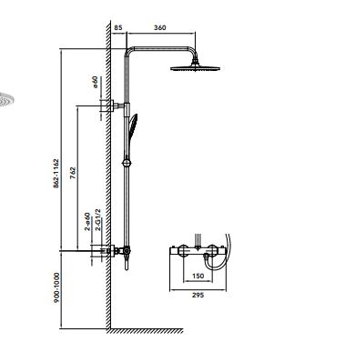 La barre de douche est conçue en inox avec une partie réglable (de 881 à 1181 mm), ce qui permet de fixer la colonne aux arrivées d'eau existantes, tout en ajustant la hauteur de la pomme de tête en fonction de la taille des utilisateurs.