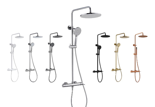 Presque. Toutes les finitions incluent une grande pomme de tête Ø25 cm et une douchette. Cependant, la finition Cuivre Brossé est considérée comme haut de gamme et présente des matériaux différents pour ses accessoires : la douchette est en laiton (1 jet) et la douche de tête est en inox Ø25 cm, au lieu de l'ABS pour les autres finitions.