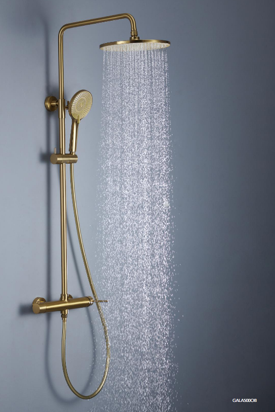 Le mitigeur mécanique (présent sur ce modèle GALA500) permet de régler le débit et la température à l'aide d'une seule manette ou poignée. Le mitigeur thermostatique (disponible sur d'autres références GALA) possède deux manettes, l'une pour le débit, l'autre pour la température, qui est maintenue constante et intègre une butée de sécurité à 38°C.