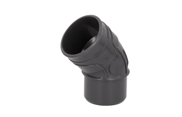 Coude simple PVC évacuation Mâle Femelle  45°. A coller. Il permet l'évacuation des eaux  usées et des eaux vannes