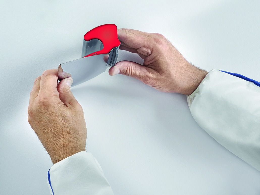 Couteau à lisser Silver lisse de chez Ocai. Poignée PVC forme ergonomique, très bonne prise en main, système de changement de lame simple, rapide et sans outil | Lame inox trempé, épaisseur 0.3 mm à bords arrondis | Souplesse et précision pour le ratissage des bandes et plaques de plâtre. S'utilise également pour un lissage parfait des enduits projetés.