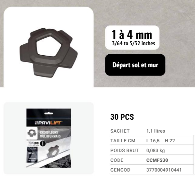 Croisillons multiformats en I | 1 à 4 mm. Le croisillon multiformat est une véritable couteau suisse pour carreleur. Il permet à la fois de régler les écarts et de réajuster les niveaux au démarrage de la pose des faïences et plinthes. Sa formé évidée au centre permet une récupération aisée, fini les croisillons qui cassent entre les carreaux.