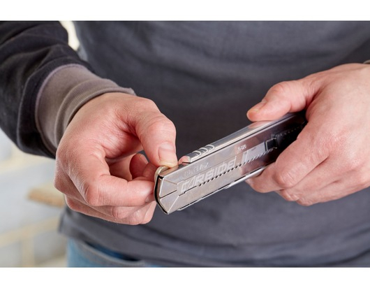 Corps aluminium léger, robuste et inoxydable. Bouton-poussoir pour un déverouillage rapide, facile et simple de la lame sans sortir le chariot.  Casse-lames intégré : pour casser les lames de manière sûre et efficace. Aucun outil nécessaire pour le changement de lames. Molette de blocage : verrouillage total de la lame pendant l’utilisation.. Cutter extra long : pour une utilisation à deux mains sur des applications nécessitant une force importante. Poignée striée : bonne prise en main et évite les glissements.