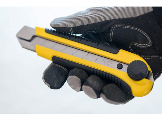 Cutter bi-matière dynagrip | Blocage de la lame par molette crantée pour une meilleure sécurité et précision de coupe | Lame sécable en 7 segments | 2 tailles disponibles