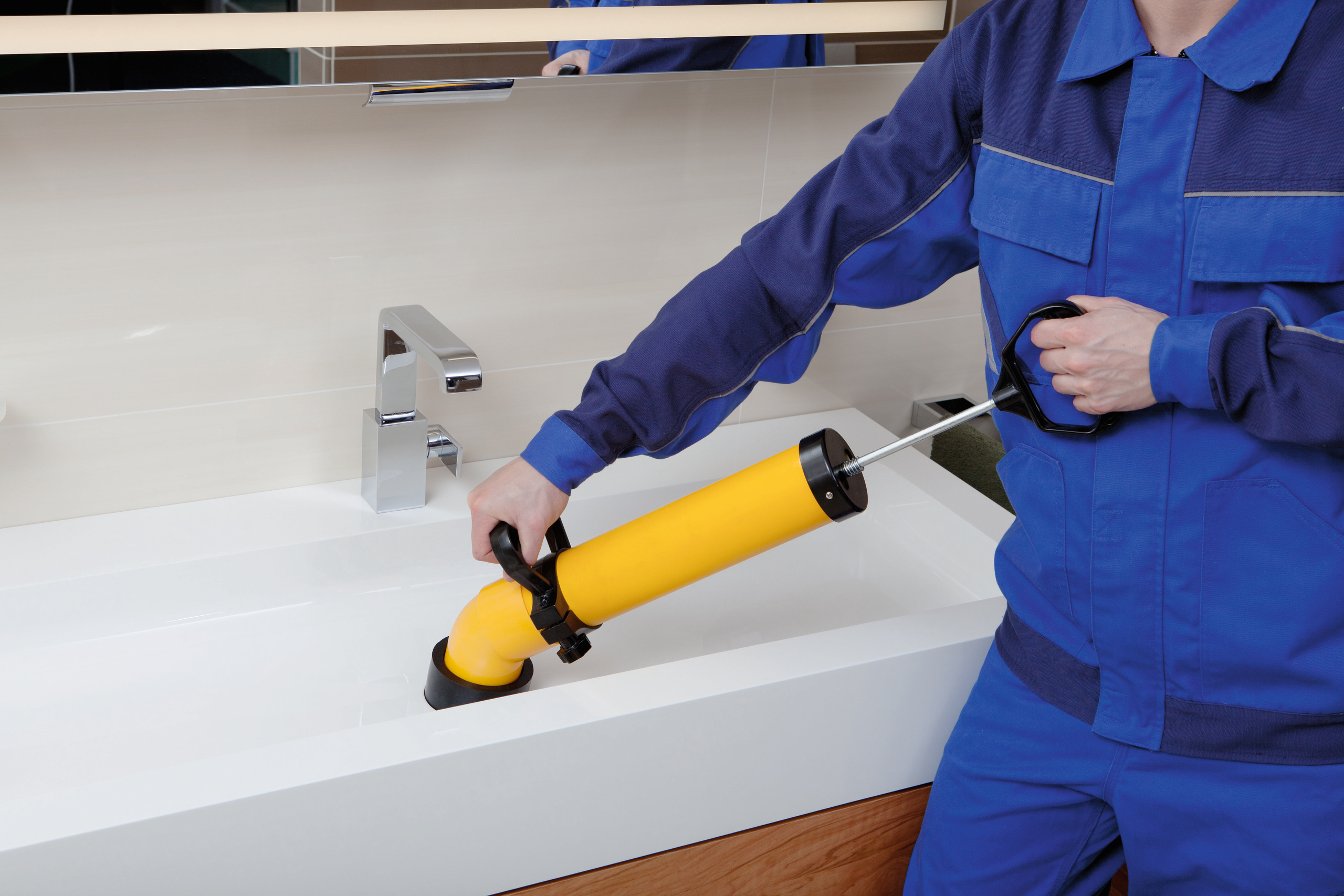 Rems Pull_Push - Elimination rapide des bouchons. Grande force de pression grâce à la poignée avant réglable. Equipement selon la nature des travaux de débouchage grâce à deux manchons: un manchon court pour les éviers et les lavabos, un manchon long pour les toilettes