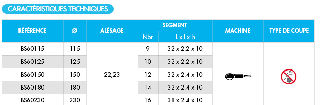 Disque diamant | BS60 |  Gamme Béton | DIAM INDUSTRIES | Diamètre 125 et 230 | Alésage 22.23
