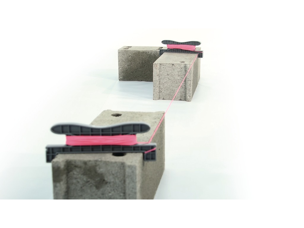 Enrouleur le Kordo Avec drisse fluo rose. Référence 400441 de chez Taliaplast. Il permet la mise en place simple et rapide d’un cordeau entre des blocs à aligner (parpaings ou briques). La monture (livrée par paire) est en ABS. Elle résiste aux chocs et à l’abrasion et permet d’enrouler et protéger le cordeau (20 mètres de fil tressé de couleur fluo, Ø 1,5 mm).