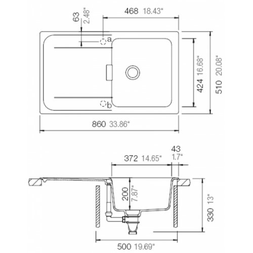 Livré avec vidage manuel chromé | Bondes de diamètre 84mm | Evier réversible