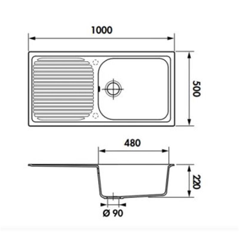 Evier Cristalite Schock Scandinave 1 grand bac et 1 égouttoir | L1000 x l500 x P220 | Autres dimensions sur demande