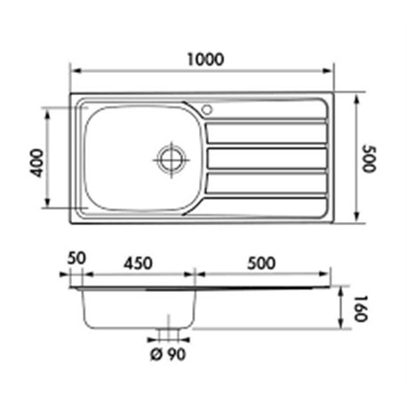 Evier en Inox avec 1 grand bac et 1 égouttoir | L1000 x l500 x P160