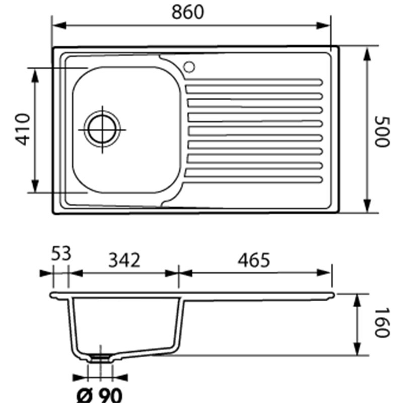 Evier en inox avec 1 bac et 1 égouttoir | L860 x l500 x P160 | Autres dimensions possibles sur demande