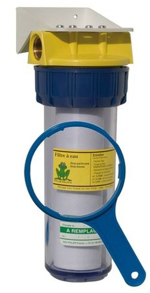 Filtre cartouche 20 mic 20x27 complet EQ-Clé. Filtre avec équerre + clé+cartouche. Idéal pour éliminer les impuretés dans votre installation. Débit min-max: 0.00 - 1.80m3/h. Raccordement: 3/4" 20x27 FF. Pression: 7 bar. Autonomie: 100m3 ou 6 mois