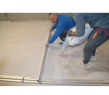 Le nivellement de dalles béton ou de planchers bois avec des défauts de planéité importants.