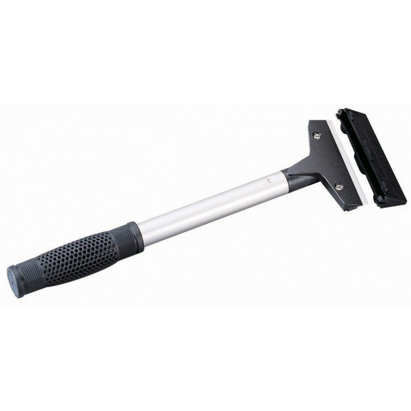 Grattoir multi-usages de marque Ocai. Pour vitres, sols et autres surfaces. Poignée de protection souple, manche en aluminium. Lames de rechange