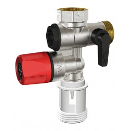 Groupe de sécurité laiton droit SFR 3/4" avec robinet à boisseau sphérique.