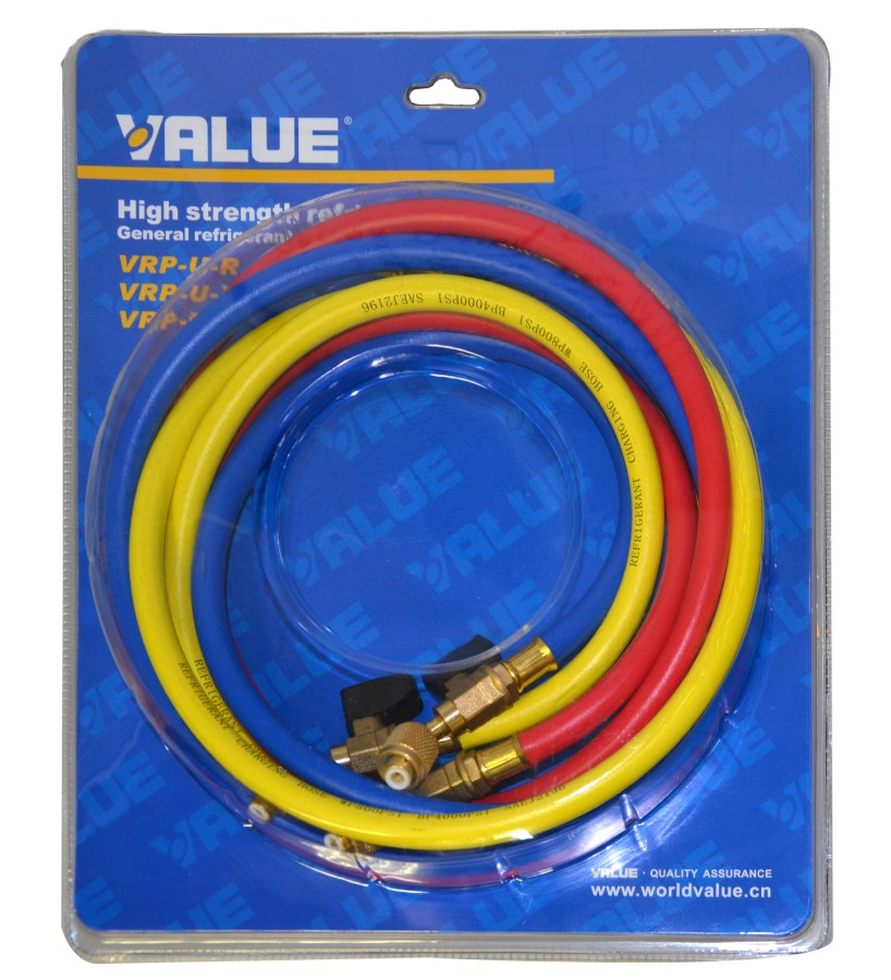 Jeu de 3 flexibles 150 cm avec vannes 1/4"-5/16" Teddington. Compatible avec tous les fluides frigorigènes, R410A, R134a, R32, R600, R290 etc. Clapet anti-retour. Contrôle efficacement le sens de circulation du fluide. Sécurité et efficacité. Épaisseur du tube en caoutchouc renforcée 12 mm. Assure un usage sûr et fiable. Résistance à l’huile élevée, anti-suintement. 3 couches renforcent le tube de réfrigérant. Efficacité et anti-suintement. Connecteur en cuivre pur pour une meilleure longévité