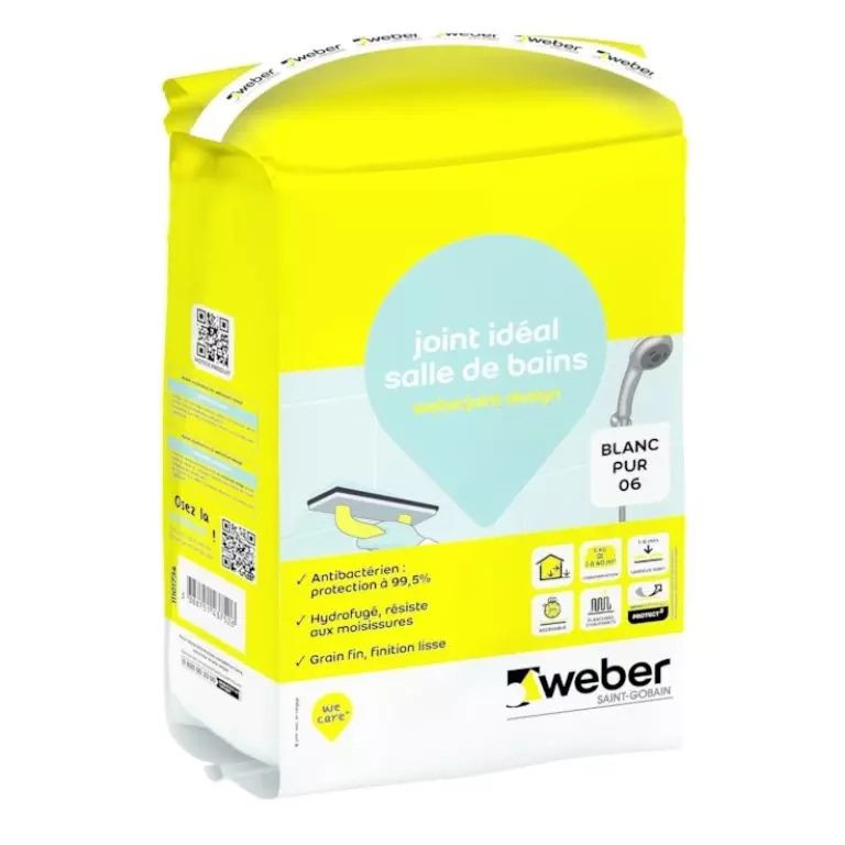 Joint décoratif hydrofugé pour salles de bain, résiste aux moisissures | Weberjoint design | Weber| Plusieurs coloris | Sac de 5kg | Produit arrêté chez WEBER, disponible jusqu'à épuisement des stocks