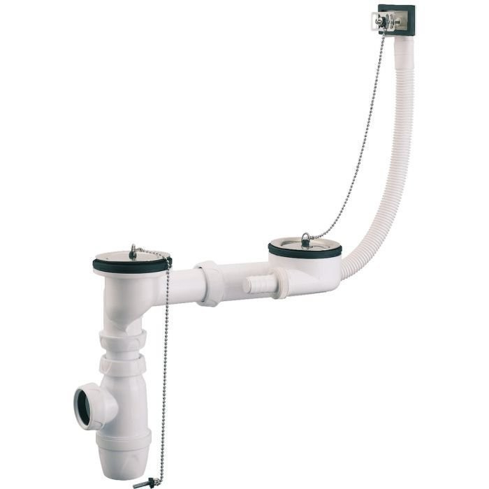 Ce kit complet équipe un évier 2 cuves de diamètre 60 mm. L'équipement est extra plat. Le siphon est réglable en hauteur et l'entraxe entre les deux cuves est également ajustable. L'équipement s'adapte à toutes les configurations d'évier. Le trop plein est incorporé avec deux gilles: l'une ronde et l'autre rectangulaire, pour s'adapter à tous les styles. Le bouchon est chromé et mesure 57,5 mm de diamètre. La cuvette inox mesure 85 mm de diamètre et le serrage peut se faire de 0 à 55 mm. Il est composé également d'une grille inox. Le corps du kit est en plastique blanc et le bouchon en inox. Le kit comprend également une prise pour machine à laver. La pose est facile. Le débit est de 56l/mn. La certification NF atteste qu'il répond à des normes françaises.