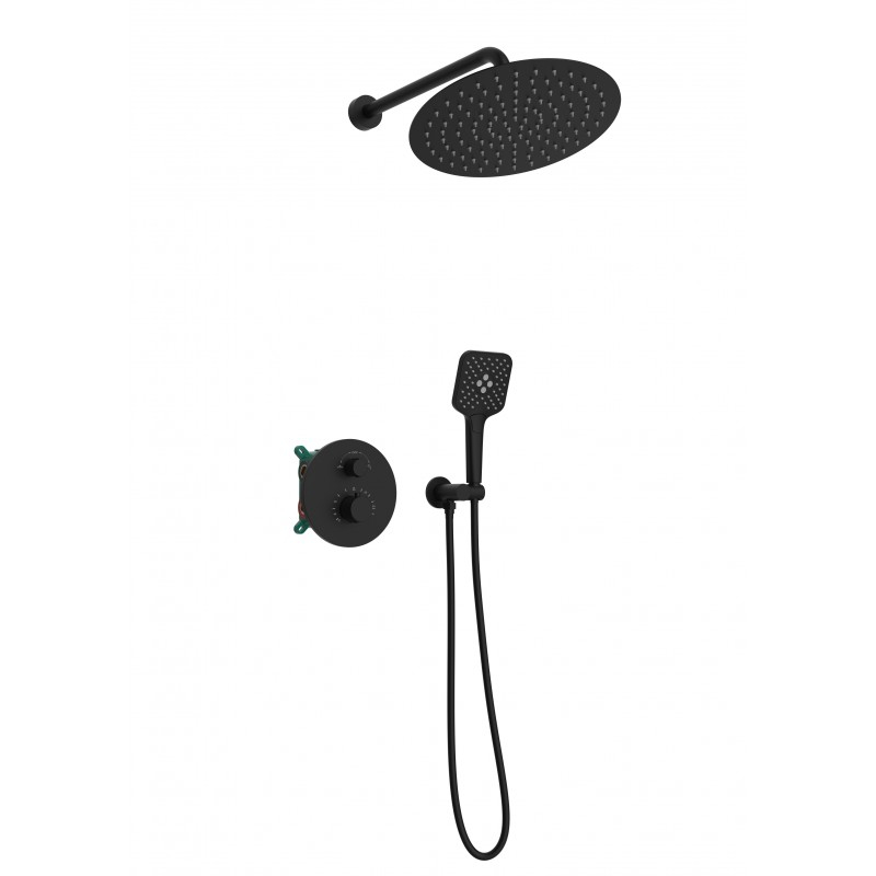 Ce kit complet de 2 voies permet de basculer entre deux sorties d'eau distinctes (par exemple, pommeau de tête et douchette à main), gérées par un seul mitigeur thermostatique rond, garantissant une température constante et sécurisée.