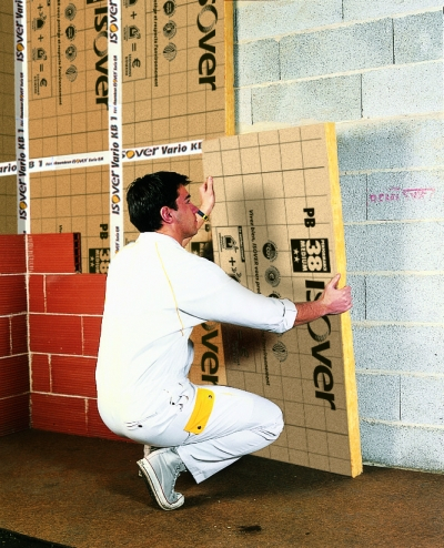 Laine de verre PB38 Revêtu kraft de Isover. Solution économique d'isolation des murs. Pose facile et rapide Solution. Isolation des murs par l'intérieur derrière une contre-cloison