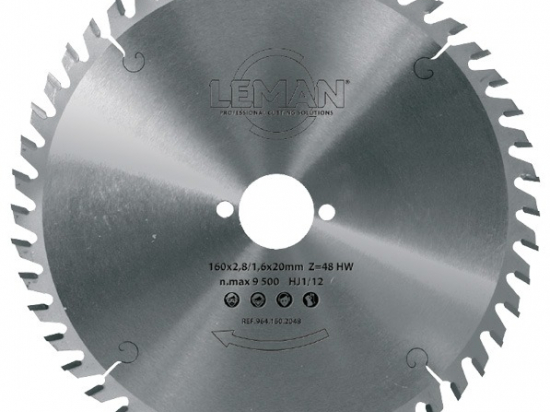 La gamme LEMAN «964», large, complète, qualitative, répond aux plus grandes marques présentes sur le marché de la scie circulaire portative, de la scie à coupe d’onglet et de la scie sur table semi-stationnaire. Différentes dentures proposées, adaptées au matériau à couper: