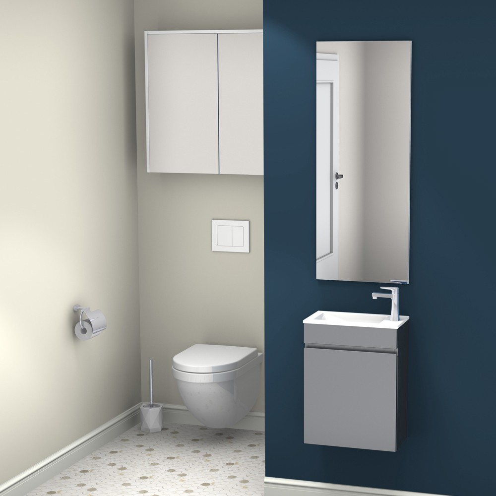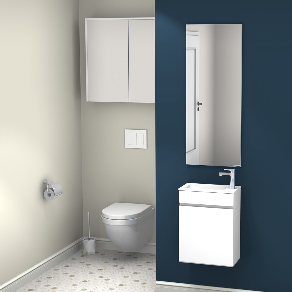 Le meuble lave‑mains DEKO est conçu comme une solution pratique et esthétique pour les espaces restreints : WC, toilettes invités, petits salles d’eau, couloirs avec lavabo, etc. Son faible encombrement (394 mm de largeur, 218 mm de profondeur) le rend particulièrement adapté pour optimiser l’espace.