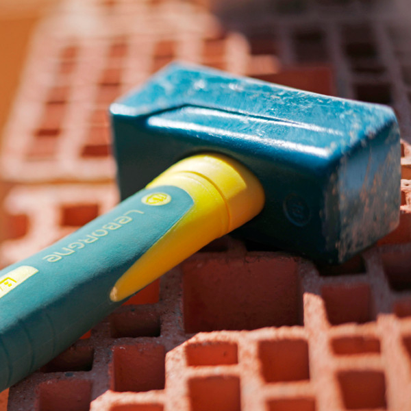 Manche tri-matière Novamax haute résistance, prévient des risques de blessures pouvant être causées par la projection de la tête de l'outil sur l'opérateur ou son entourage en cas de rupture du manche Emmanchement douille rase, protège l'extrémité du manche contre les risques de rupture en cas de faux-coups. Acier au Carbone forgé, trempé et revenu. Massette Pro. 3 surfaces pour 3 fonctions : frapper, une surface bombée pour frapper sur les broches, les ciseaux, les ailettes de coffrage ; racler, deux arêtes vives trempées pour racler les balèvres des mûrs décoffrés et les banches de coffrage ; tailler, de vrais angles vifs pour tailler la pierre, le parpaing, etc. Porter lunettes, gants et vêtements de protection. Le principal risque sur ces outils est la projection d'éclats métalliques provenant soit de l'outil soit de l'objet frappé. L'éclat peut être dû à un défaut métallurgique, au simple vieillissement ou à une mauvaise utilisation. Ne pas utiliser un outil présentant des fissures ou des refoulements de matière (dans ce cas, les éliminer à la meule).