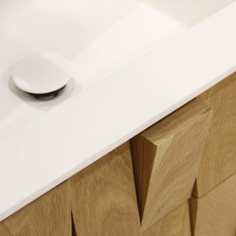Un modèle signature de la créatrice inspirée par le caractère authentique du bois naturel. De multiples facettes en chêne massif rythment la façade du meuble Stratège telle une succession de notes harmoniques.