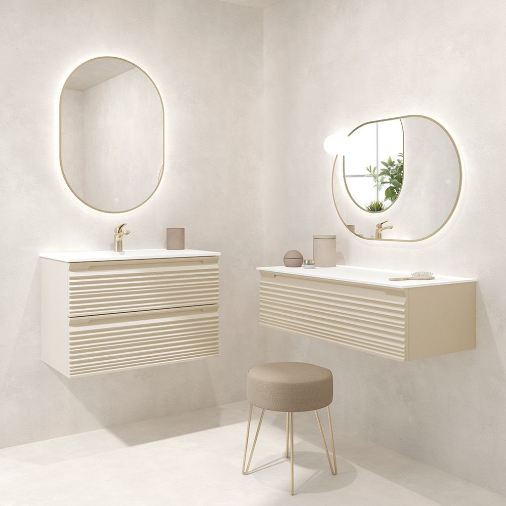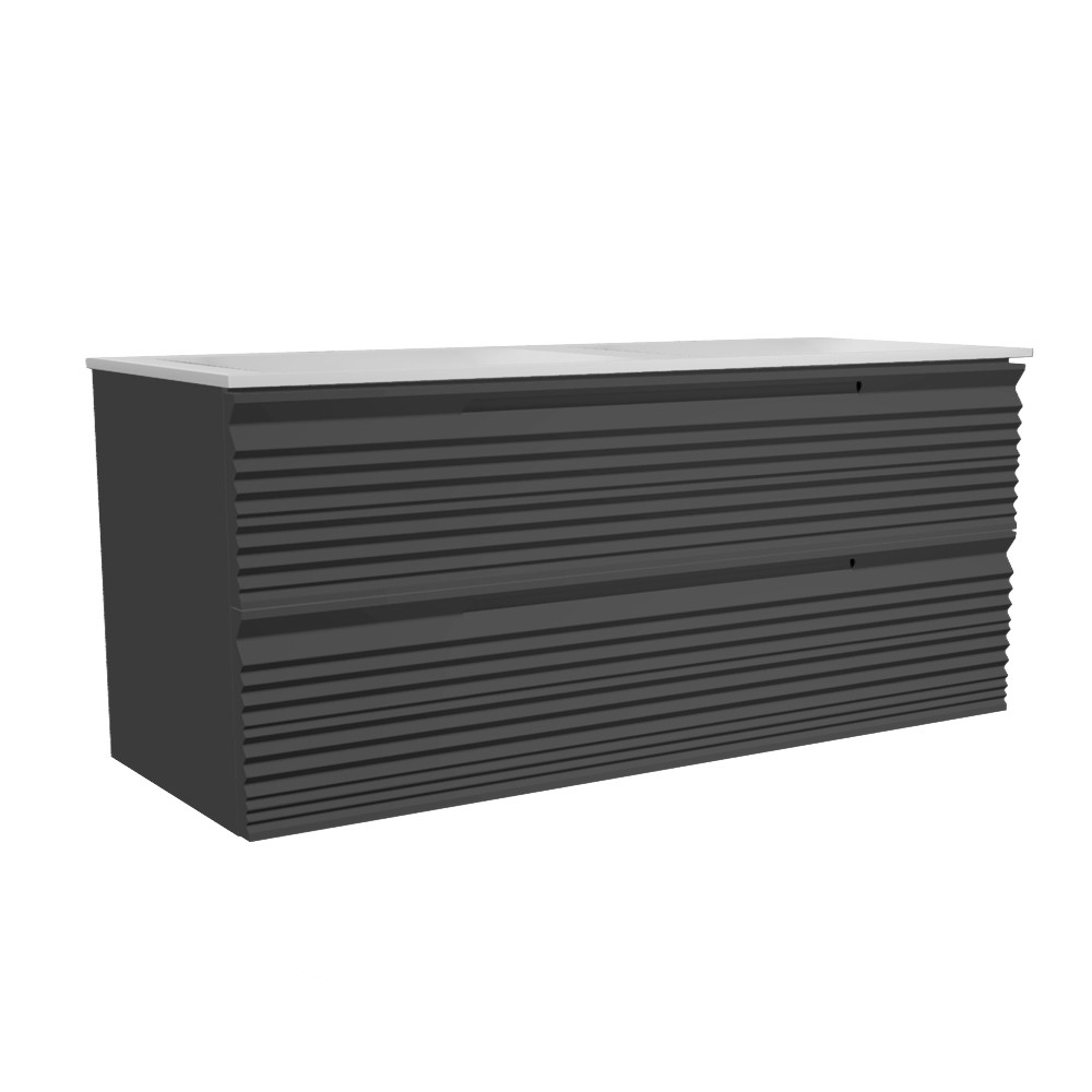 Un subtil jeu d'ombres et de lumière distillé par le relief des ondulations en façade. Les prises de mains, finement incrustées, sont discrètes et suivent harmonieusement les lignes directrices. La finition noire élégante et raffinée intègre notre palette de couleurs en 2022. Proposés en 4 dimensions et un module, les meubles Dune bénéficient du « sur-mesure » pour les salles de bains les plus exigeantes. Meuble à suspendre 2 tiroirs en L800, L1000, L1200 et 1400 mm