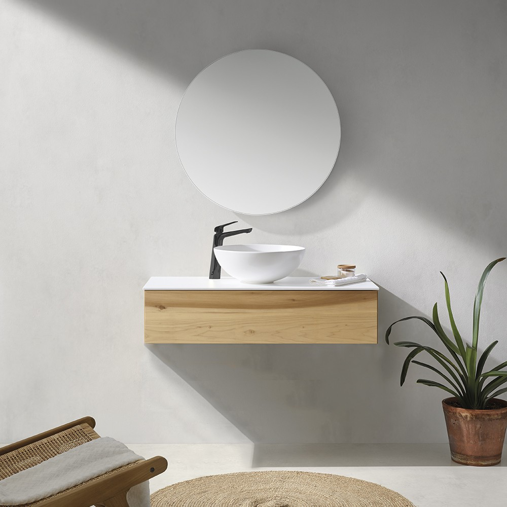 Un design aux lignes pures dessiné par une créatrice à la recherche du sens réel des choses. Arrêtes biseautées en finition affleurante, ouverture sans poignées, système push. La collection FUJI est déclinée en plusieurs dimensions et finitions, bois massifs ou laques. Les configurations les plus exigeantes bénéficient de l'offre sur-mesure. Meuble à suspendre 1 tiroir en L1000 et 2 tiroirs en L800, L1000, L1200 et 1400 mm 2 tiroirs coulissants métalliques GRASS avec fermeture progressive SOFT CLOSE Ouverture PUSH Finition laquée : - corps et joues en MFC (panneaux de bois aggloméré et mélaminé) - ép. 16 mm - façades en MDF (panneaux de fibres à densité moyenne) - ép. 16 mm - finition extérieure laqué mat blanc craie, amande, noir absolu, smoke poudré Finition bois massif : - corps et joues en tulipier massif - ép. 21 mm Livré sans vidage (p.236) Module à suspendre 1 tiroir en 800 mm Tiroir coulissant métallique GRASS avec fermeture progressive SOFT CLOSE Laqué : corps et joues en MFC - ép. 16 mm - Façade en MDF - ép. 16 mm Bois massif : corps et joues en tulipier - ép 21 mm Colonne Réversible - 1 porte 1 étagère Laqué : corps et joues en MFC - ép. 16 mm - Façade en MDF - ép. 16 mm Bois massif : corps et joues en tulipier - ép 21 mm