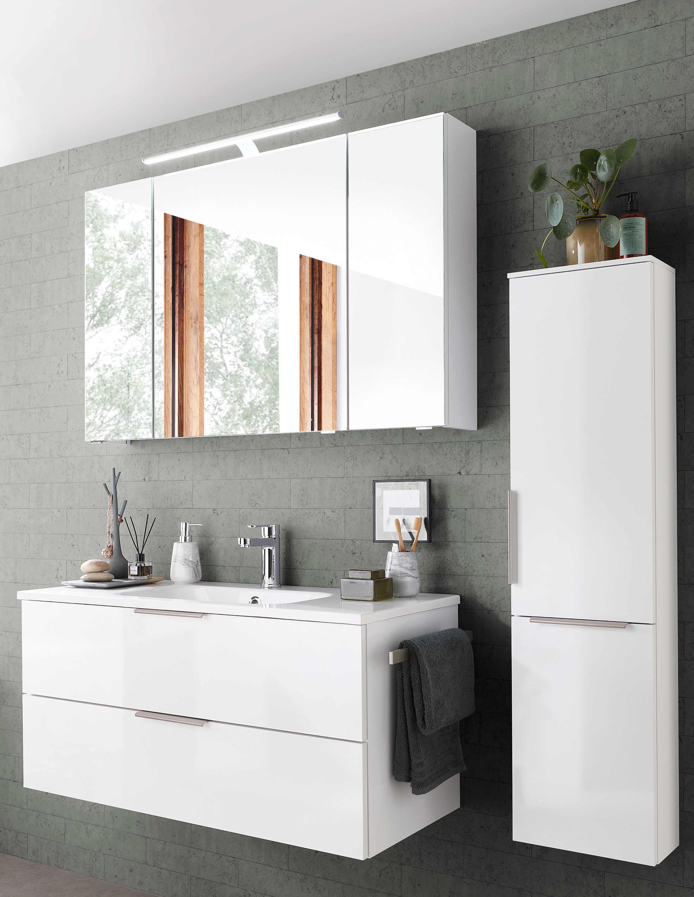 Colonne - Armoire de toilettes - Miroir et vasque marbre ou céramique en option sur demande