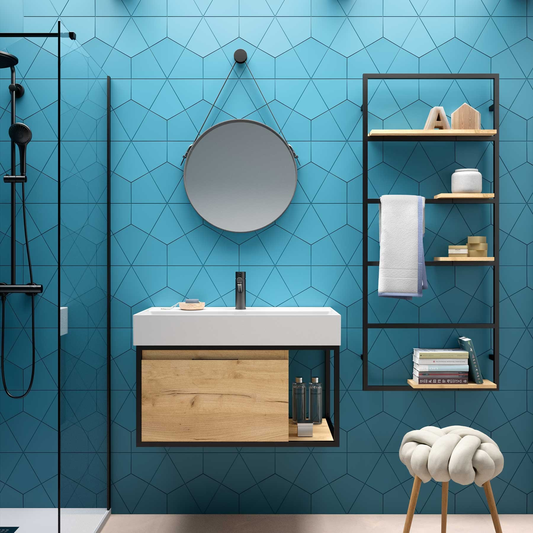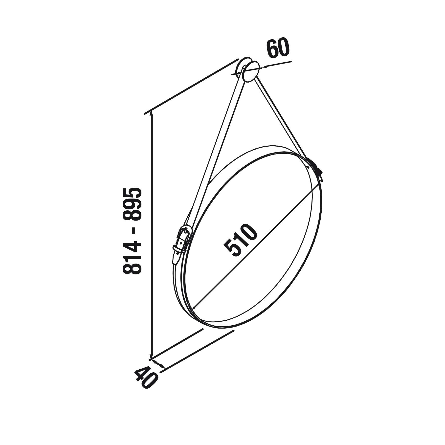 Ce miroir rond a du caractère et de la personnalité et se compose d’un support, d’une sangle et d’un cadre en cuir synthétique. Le miroir est suspendu au support mural par la sangle en cuir synthétique. Cette sangle peut être réglée pour choisir la distance entre l’attache et le support mural.