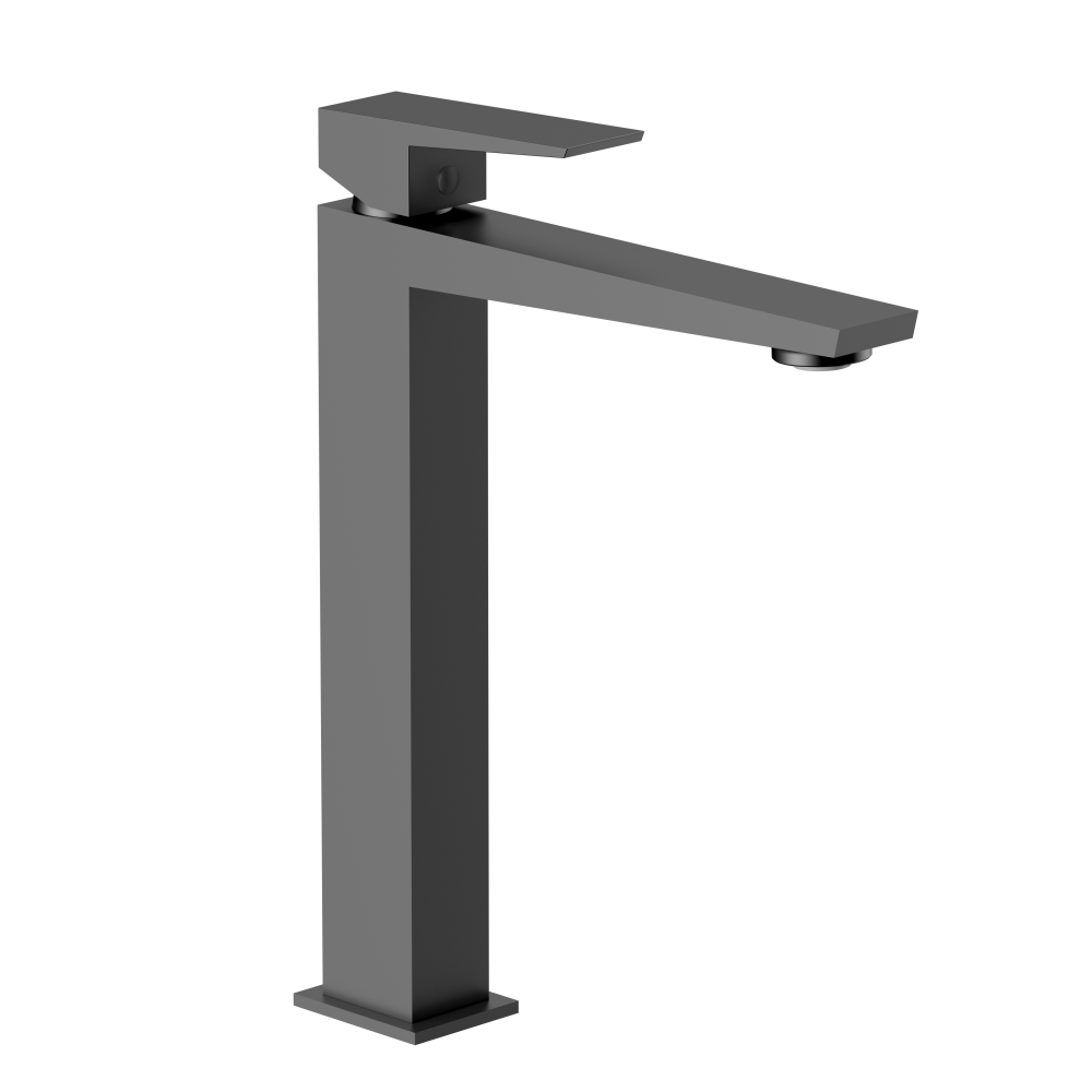 Mitigeur Lavabo Haut Collection Grapkik de la marque OTTOFOND. Design brut, lignes franches, une collection au caractère affirmé déclinée en chromé, gun et noir mat | Cartouche Sedal Ø 25 mm | Mousseur mâle Ø 24 mm Néoperl | Flexibles d’alimentation inox | Livré avec bonde clic clac sans trop plein coloris coordonné au mitigeur