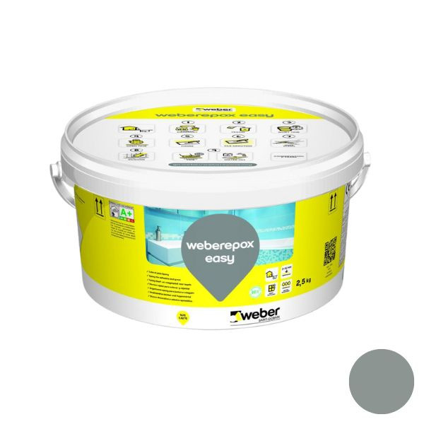 La gamme weberepox easy est vendue en pot de 2.5 kg ou 5kg, proposée en différentes couleurs. En ligne, nous vendons uniquement 3 teintes: le blanc pur, le gris ciment et le gris perle. Si vous souhaitez un autre coloris proposé dans le nuancier Weber, il est possible de s'approvisionner sur commande. Il peut être aussi compléter du weber gold effect ou weber silver effect pour un effet pailleté (cf. fiche technique)
